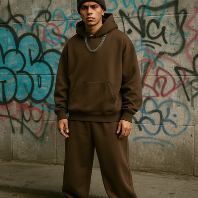 Completo tuta fondo largo streetwear marrone