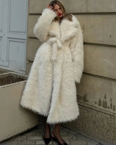 Cappotto lungo eco pelliccia donna